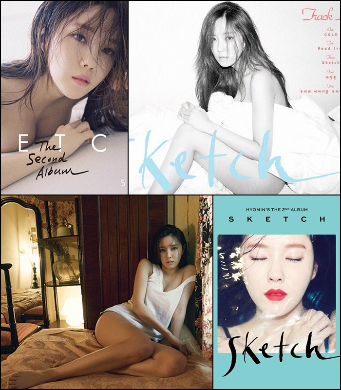 온라인에 공개된 사진은 예고편에 불과했다. ‘스케치’ 오프라인 앨범 재킷 속 효민은 세미누드에 가까운 노출을 보여준다. 침대 위에서 전라로 몸을 웅크리고 있거나, 흰 속옷을 입고 샤워를 하는 모습, 특정 신체 부위를 클로즈업 하는 이미지 등 논란이 될 만한 수위의 이미지들로 재킷을 가득 채웠다.
