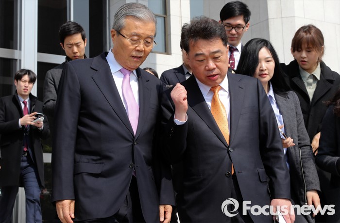 | △ 대변인과 대화하는 김종인 |