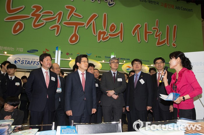 (고양=포커스뉴스) 23일 오전 경기도 고양시 킨텍스 제2전시장에서 열린 2016 대한민국 고졸인재 잡 콘서트(Job Concert)에서 황교안 국무총리가 참석해 방통대 부스 담당자와 이야기 나누고 있다.
