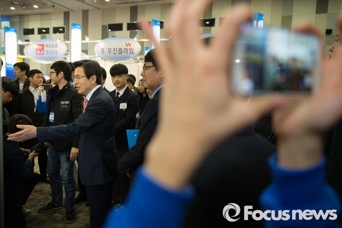 (고양=포커스뉴스) 23일 오전 경기도 고양시 킨텍스 제2전시장에서 열린 2016 대한민국 고졸인재 잡 콘서트(Job Concert)에서 황교안 국무총리가 참석해 부스 담당자에게 질문하고 있다.
