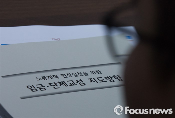 (세종=포커스뉴스) 임서정 고용노동부 노사협력정책관이 23일 오전 세종시 정부세종청사 고용노동부 기자실에서 2016년도 임금·단체교섭 지도방향에 대해 설명하고 있다.