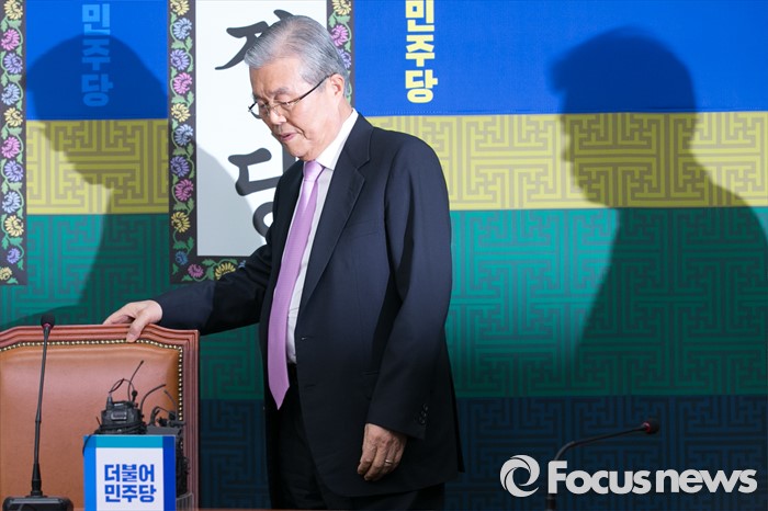(서울=포커스뉴스) 김종인 더불어민주당 비대위 대표가 23일 오후 서울 여의도 국회에서 거취 표명 기자회견을 위해 입장하고 있다.