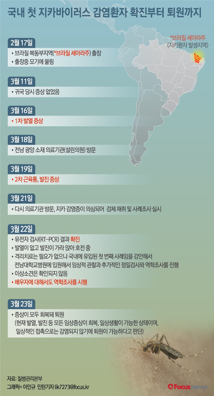 | △ [그래픽] 국내 첫 지카바이러스 감염환자 확진부터 퇴원까지 |