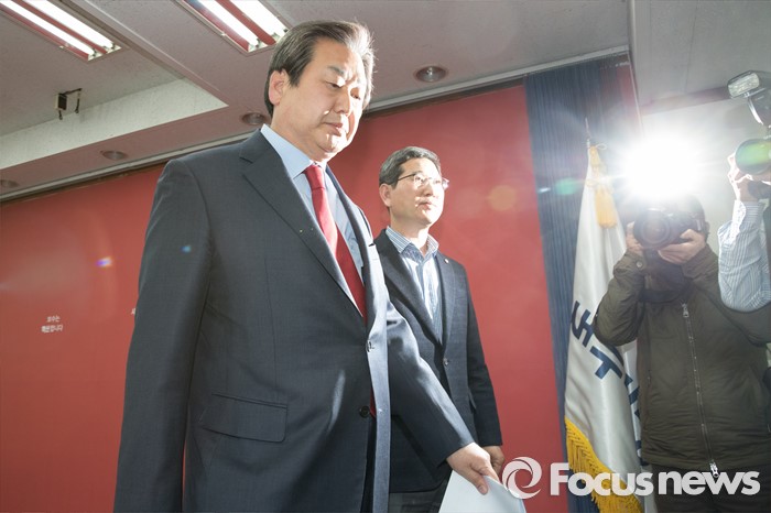 (서울=포커스뉴스) 김무성 새누리당 대표가 23일 오후 서울 영등포구 당사에서 유승민 의원의 공천과 관련해 긴급 기자회견을 마치고 이동하고 있다.