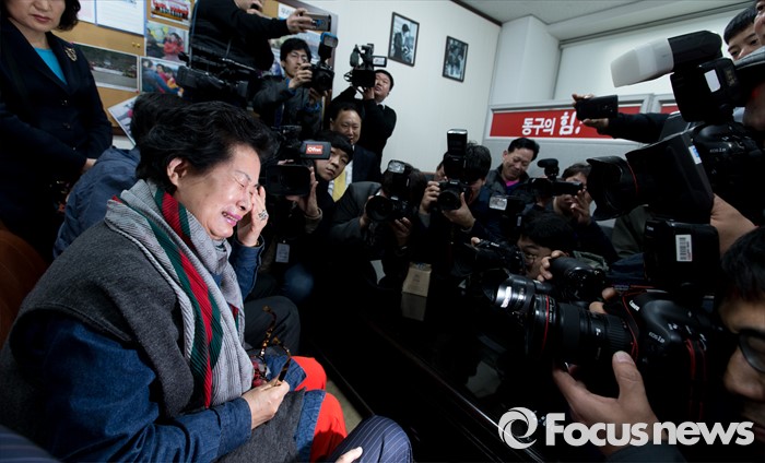 (대구=포커스뉴스) 20대 총선 후보자 등록일 하루 전인 23일 오후 대구 동구 용계동 유승민 의원 선거사무소에서 한 지지자가 유 의원의 새누리당 공천 보류를 안타까워하며 눈물을 흘리고 있다.