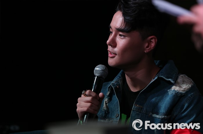 (서울=포커스뉴스) 23일 오후 서울 강남구 JBK 컨벤션홀에서 가수 딘이 첫번째 정규앨범 [130 mood : TRBL] 발표 기자간담회에 참석해 취재진의 질문에 답하고 있다.