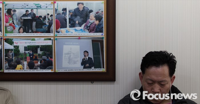 유승민 의원은 오후 7시, 9시에 각각 열리는 공관위·최고위 회의의 결과와 상관없이 '새누리당 탈당-무소속 출마'를 선언할 것으로 점쳐지고 있다. 유 의원이 자정 이전에 당적을 확실히 정리해야 24~25일 이틀 동안 총선 후보 등록을 할 수 있기 때문이다.(대구=포커스뉴스) 20대 총선 후보자 등록일 하루 전인 23일 오후 대구 동구 유승민 의원 선거사무소에 유 의원의 사진이 걸려있다. 2016.03.23 김인철 기자