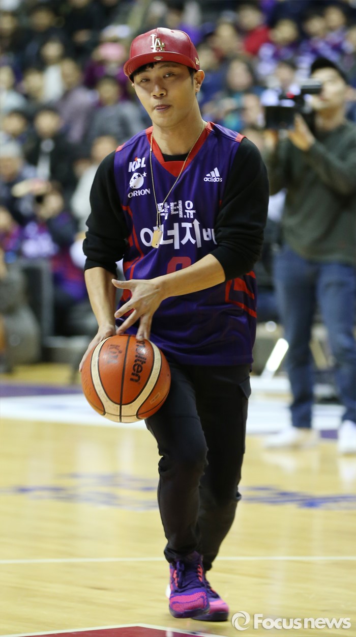 (고양=포커스뉴스) 23일 고양체육관에서 열린 2015-2016 프로농구 챔피언결정전 3차전 오리온-KCC경기에서 드라마 '태양의 후예'에 출연중인 탤런트 진구가 시투하고 있다.