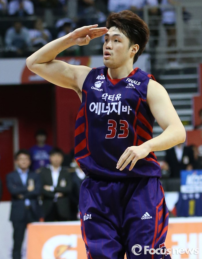 (고양=포커스뉴스) 23일 고양체육관에서 열린 2015-2016 프로농구 챔피언결정전 3차전 오리온-KCC경기에서 오리온 이승현이 3점슛을 성공시킨뒤 벤치를 향해 경례를 하고 있다.
