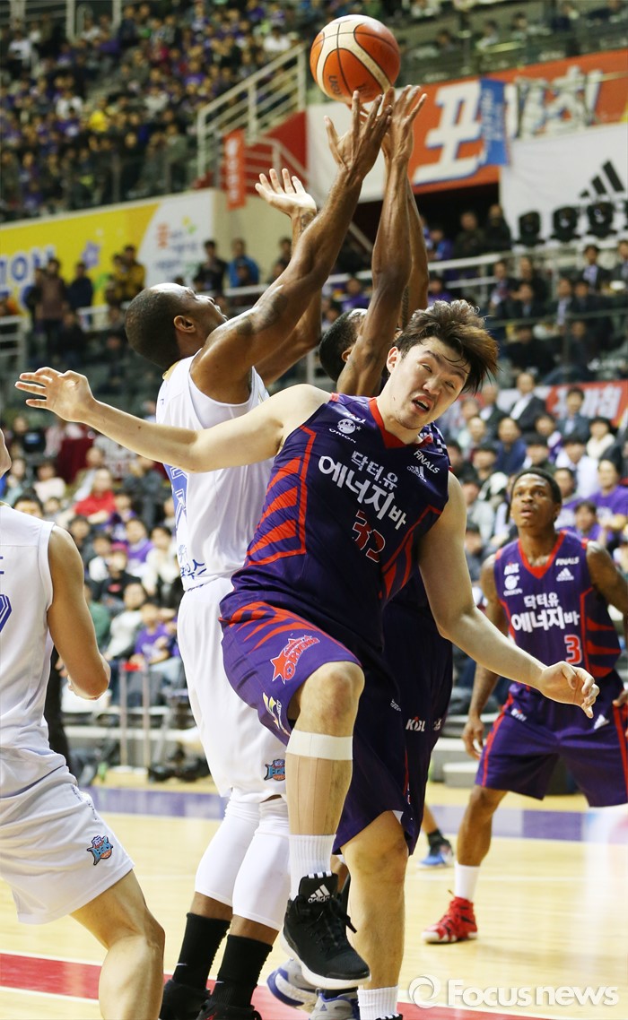 (고양=포커스뉴스) 23일 고양체육관에서 열린 2015-2016 프로농구 챔피언결정전 3차전 오리온-KCC경기에서 KCC 허버트 힐과 오리온 헤인즈가 이승현을 밀어내고 리바운드 다툼을 벌이고 있다.