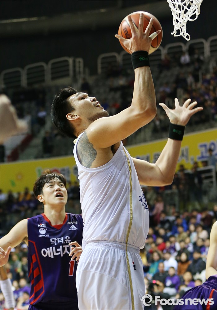 (고양=포커스뉴스) 23일 고양체육관에서 열린 2015-2016 프로농구 챔피언결정전 3차전 오리온-KCC경기에서 KCC 하승진이 리바운드볼을 잡아 슈팅하고 있다.