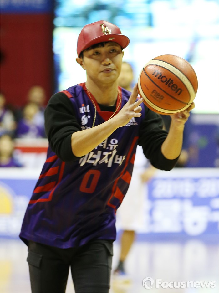(고양=포커스뉴스) 23일 고양체육관에서 열린 2015-2016 프로농구 챔피언결정전 3차전 오리온-KCC경기에서 드라마 '태양의 후예'에 출연중인 탤런트 진구가 시투하고 있다.