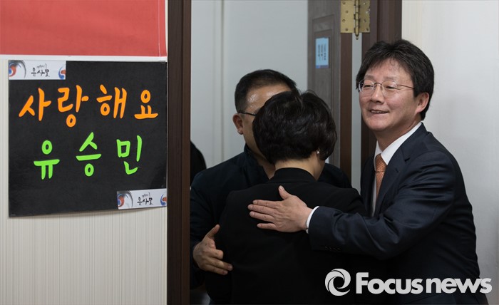 (대구=포커스뉴스) 유승민 의원이 23일 오후 대구 동구 용계동 사무소에서 새누리당 탈당 및 무소속 출마 기자회견에 앞서 지지자들과 인사를 나누고 있다.
