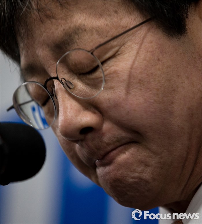 (대구=포커스뉴스) 유승민 의원이 23일 오후 대구 동구 용계동 사무소에서 새누리당 탈당 및 무소속 출마 기자회견을 하고 있다.