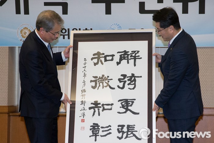 임종룡 금융위원장은 금감원장이 전달한 휘호에 대해 "매우 의미가 깊다"고 평가했다.