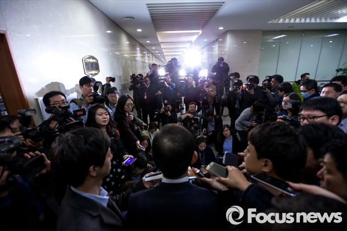| △ 취재진에 둘러 싸인 주호영 의원 |