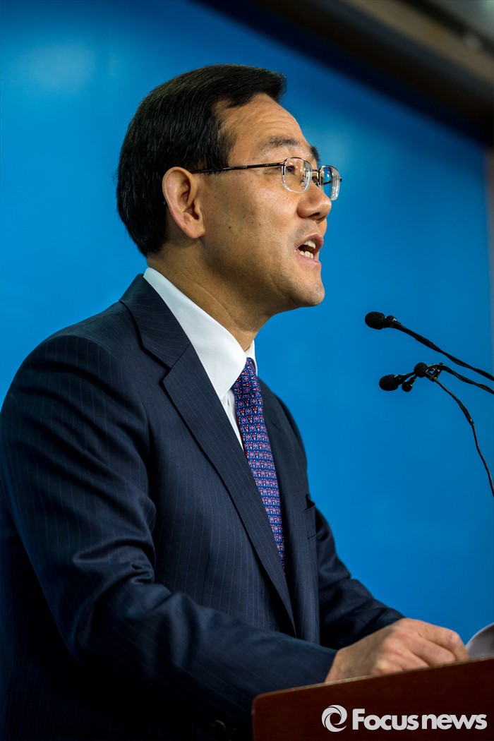 (서울=포커스뉴스) 20대 총선에서 새누리당 공천을 받지 못한 주호영(대구 수성을) 의원이 24일 오전 서울 영등포구 국회 정론관에서 무소속 출마 발표를 하고 있다.