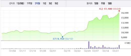 24일 오전 10시43분 현재 NEW 주가는 전일대비 5.36%(850원) 오른 1만6700원에 거래되고 있다.