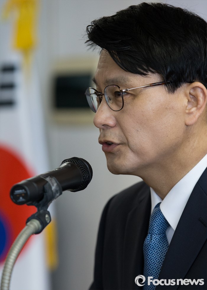 (인천=포커스뉴스) 새누리당을 탈당한 윤상현 의원이 24일 오전 인천 남구 지역구 사무실에서 무소속 출마 선언 기자회견을 하고 있다.