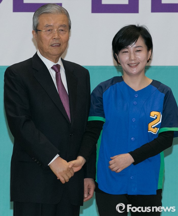 (서울=포커스뉴스) 김종인(왼쪽) 더불어민주당 비대위 대표가 24일 오전 서울 여의도 국회에서 공천장 수여식에 참석해 제윤경 비례대표 후보와 기념촬영을 하고 있다.