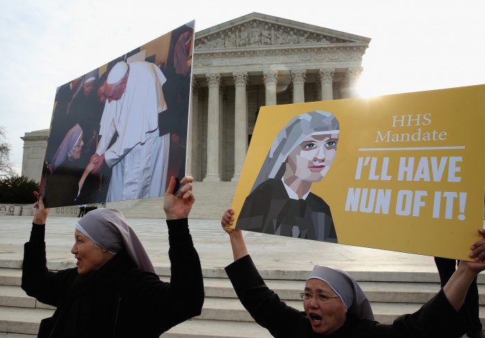 피임을 부도덕하다고 보는 기독교 단체장들은 정부가 신자들에게 “신앙을 따를 것인가 법률을 따를 것인가” 사이의 선택을 강요해서는 안 된다고 주장한다. 그러면서 그들은 이번 기회에 예배당들에 그랬듯이 그들 기관에도 법 적용을 완전히 면제시키라고 요구한다.