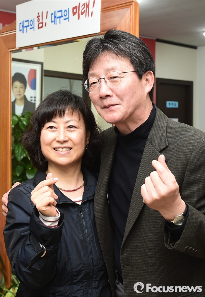 (대구=포커스뉴스) 전날 새누리당 탈당과 함께 무소속 출마를 선언한 대구 동구을 유승민 의원이 24일 오후 대구 동구의 사무소에서 한 지지자와 기념촬영을 하고 있다.