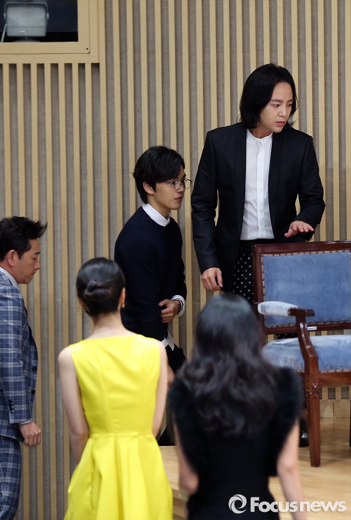 (서울=포커스뉴스) 24일 오후 서울 양천구 SBS 목동사옥에서 열린 월화드라마 '대박' 제작발표회에 참석한 출연진이 포토타임을 위해 무대에 오르고 있다.