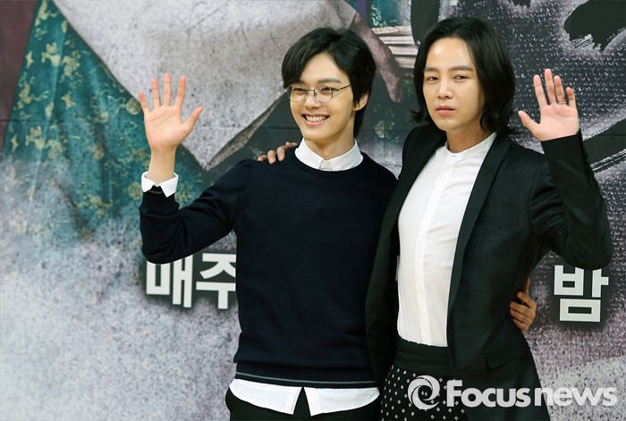 (서울=포커스뉴스) 24일 오후 서울 양천구 SBS 목동사옥에서 열린 월화드라마 '대박' 제작발표회에 참석한 배우 여진구(왼쪽)와 장근석이 포토타임을 갖고 있다.