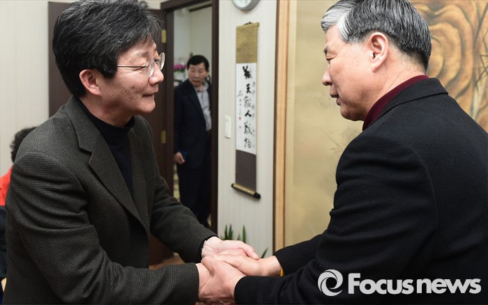 (대구=포커스뉴스) 전날 새누리당 탈당과 함께 무소속 출마를 선언한 대구 동구을 유승민 의원이 24일 오후 대구 동구의 사무소에서 지지자들과 만나 이야기를 나누고 있다.