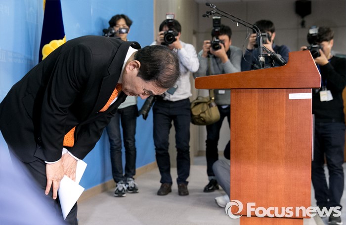 (서울=포커스뉴스) 새누리당을 탈당한 이재오 의원이 24일 오후 서울 여의도 국회 정론관에서 20대 총선 무소속 출마 기자회견을 마친 뒤 인사하고 있다.