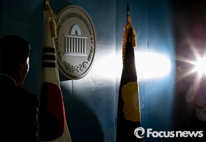 (서울=포커스뉴스) 새누리당을 탈당한 이재오 의원이 24일 오후 서울 여의도 국회 정론관에서 20대 총선 무소속 출마 기자회견을 위해 입장하고 있다.