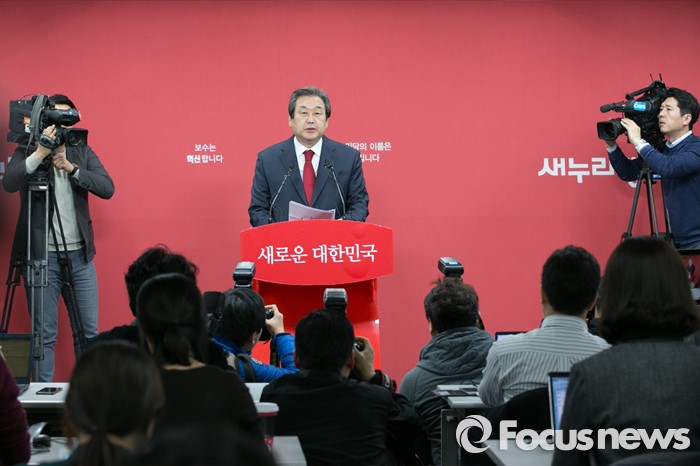(서울=포커스뉴스) 김무성 새누리당 대표가 24일 오후 서울 여의도 당사 브리핑실에서 기자회견을 하고 있다. 이 자리에서 김 대표는 "서울 은평구(을), 송파구(을), 대구 동구(갑), 동구(을), 달성군 등 최고위 의결이 보류된 5곳에 대한 공천관리위원회의 결정에 대해서 의결을 하지 않기로 결정 했다"고 말했다.