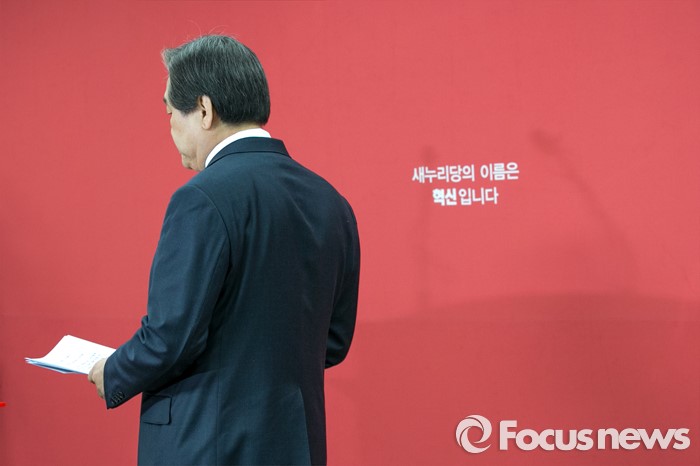(서울=포커스뉴스) 김무성 새누리당 대표가 24일 오후 서울 여의도 당사 브리핑실에서 기자회견을 위해 입장하고 있다. 이 자리에서 김 대표는 "서울 은평구(을), 송파구(을), 대구 동구(갑), 동구(을), 달성군 등 최고위 의결이 보류된 5곳에 대한 공천관리위원회의 결정에 대해서 의결을 하지 않기로 결정 했다"고 말했다.