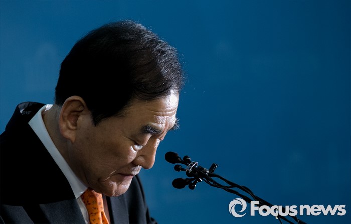 (서울=포커스뉴스) 새누리당을 탈당한 이재오 의원이 24일 오후 서울 여의도 국회 정론관에서 20대 총선 무소속 출마 기자회견을 하고 있다.