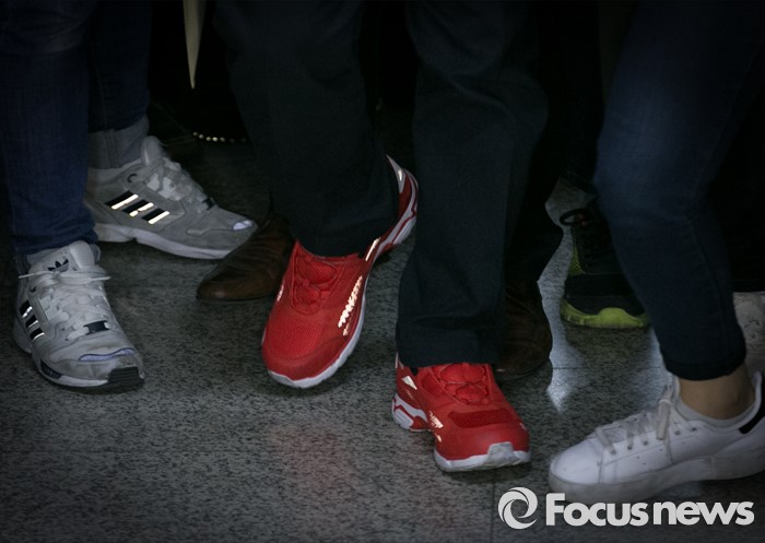 (서울=포커스뉴스) 김무성 새누리당 대표가 유승민 의원 지역구를 포함 5개 지역에 대한 최종 의결 거부하고 부산으로 떠난 24일 오후 서울 여의도 국회에서 열린 비공개 최고위원 간담회에 빨간 운동화를 신은 안대희 최고위원이 참석하고 있다.