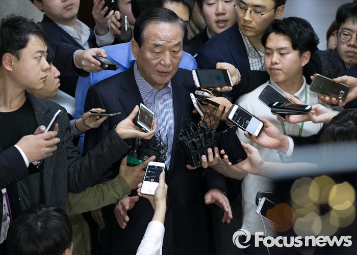 (서울=포커스뉴스) 김무성 새누리당 대표가 유승민 의원 지역구를 포함 5개 지역에 대한 최종 의결 거부하고 부산으로 떠난 24일 오후 서울 여의도 국회에서 열린 비공개 최고위원 간담회에 서청원 최고위원이 참석하며 취재진 질문에 답하고 있다.