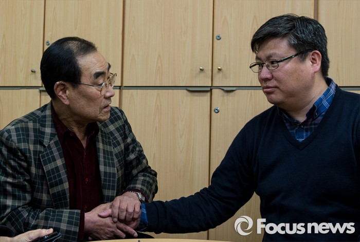 (서울=포커스뉴스) 지난 1983년 7살의 나이에 스웨덴으로 입양을 갔던 김세진(Daniel sei jin Magnusson·41) 씨가 경찰의 도움으로 가족을 찾았다. 24일 오전 서울 남대문경찰서 민원실에서 김 씨가 생부 김용환(75)씨와 손을 잡고 있다. 김 씨는 한국의 가족을 찾기 위해 지난 3월 16일남대문경찰서 민원실을 찾았고, 경찰은 김 씨가 가지고 온 재적등본, 친권포기각서 등의 자료를 바탕으로 친부와 누나들을 찾았다.