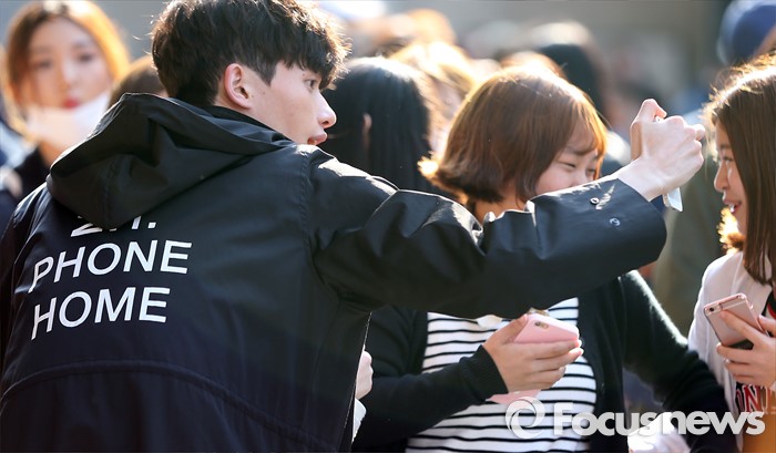 (서울=포커스뉴스) 24일 오후 서울 중구 동대문 디자인 플라자에서 열린 '2016 F/W 헤라 서울패션위크에 참여한 한 모델이 시민들과 사진을 찍고 있다.