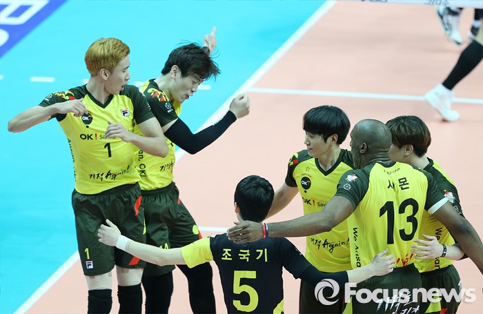| △ 환호하는 송명근과 송희채 |