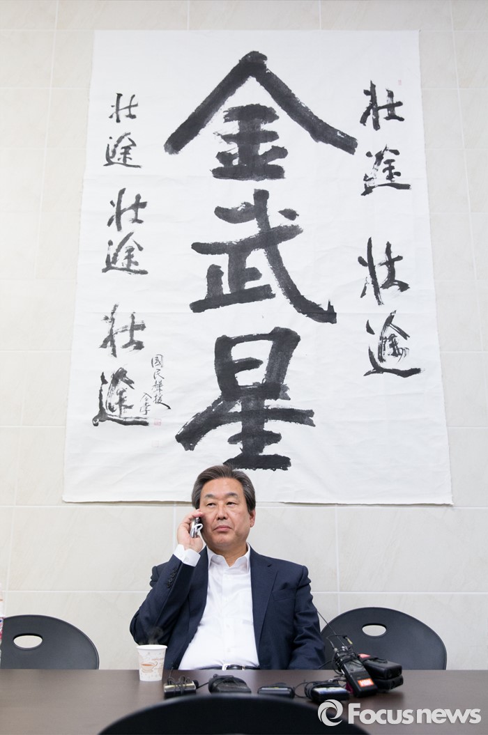 (부산=포커스뉴스) 당 공천관리위원회의 공천안에 반발해 최고위원회의 소집을 거부한 김무성 새누리당 대표가 24일 오후 부산 영도구 자신의 사무소에서 설득을 위해 부산을 찾은 원유철 원내대표를 기다리며 통화하고 있다.