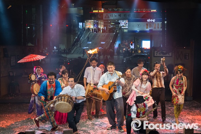 (서울=포커스뉴스) 24일 오후 서울 왕십릭역 광장 특설무대에 설치된 텐트극장에서 한·일 연극 공동 프로젝트 일환으로 열린 '백년, 바람의 동료들' 연극에서 일본극단 신주쿠양산박 단원들이 멋진 무대를 선보이고 있다.