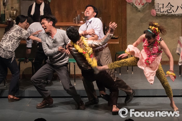 (서울=포커스뉴스) 24일 오후 서울 왕십릭역 광장 특설무대에 설치된 텐트극장에서 한·일 연극 공동 프로젝트 일환으로 열린 '백년, 바람의 동료들' 연극에서 일본극단 신주쿠양산박 단원들이 멋진 무대를 선보이고 있다.