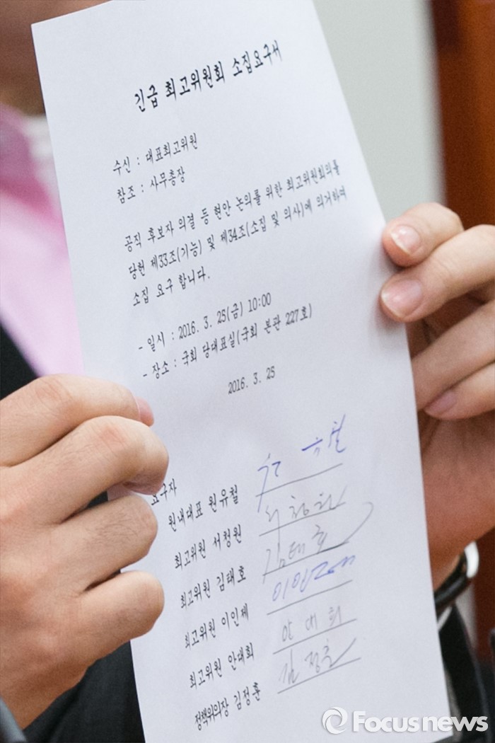 | △ 與, 긴급 최고위 소집 요구 |