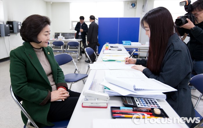 (대구=포커스뉴스) 25일 오전 대구 동구선거관리위원회에서 권은희(대구 북갑) 의원이 후보자 등록을 하고 있다.