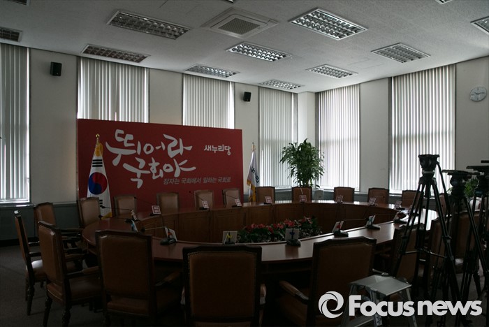 (서울=포커스뉴스) 25일 오전 서울 여의도 국회 새누리당 대표최고위원회의실에 불이 꺼져 있다. 이날 새누리당 최고위원회는 원유철 원내대표를 비롯한 최고위원들의 긴급 최고위원회 소집 요구로 국회 대표최고위원실에서 열릴 예정이었으나, 예정된 시간을 훌쩍 넘겨 당사 회의실에서 비공개로 열리게 되었다.