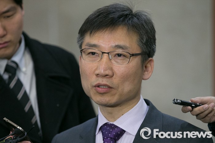 (서울=포커스뉴스) 이상규 전 통합진보당 의원이 25일 오전 서울 여의도 국회 정론관에서 기자회견을 마친 뒤, 기자들의 질문에 답변하고 있다. 지난 2014년 12월 헌법재판소의 통진당 해산결정으로 국회의원직을 박탈당한 이 전 의원은 민중연합당에 입당해, 이번 20대 총선에서 서울 관악을에 출마한다고 밝혔다.