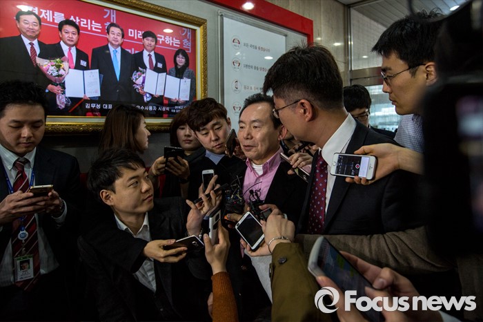 (서울=포커스뉴스) 이른바 진박 후보 공천장에 도장 못찍는다며 김무성 새누리당 대표의 '옥새투쟁'이 이어지고 있는 25일 오전 서울 영등포구 새누리당사 앞에서 이인재 새누리당 최고위원이 회의에 참석하기 위해 이동 하고 있다.