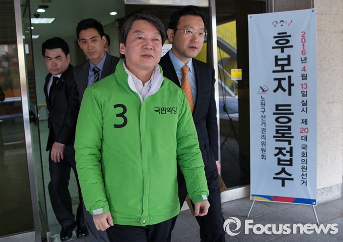 (서울=포커스뉴스) 노원병을 지역구로 출마하는 안철수 국민의당 상임공동대표가 25일 오후 서울 노원구 공릉동 선거관리위원회에서 제20대 국회의원 선거 후보자 등록을 마친 후 등록장을 나서고 있다.
