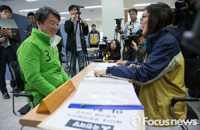 (서울=포커스뉴스) 노원병을 지역구로 출마하는 안철수 국민의당 상임공동대표가 25일 오후 서울 노원구 공릉동 선거관리위원회에서 제20대 국회의원 선거 후보자 등록을 하고 있다.