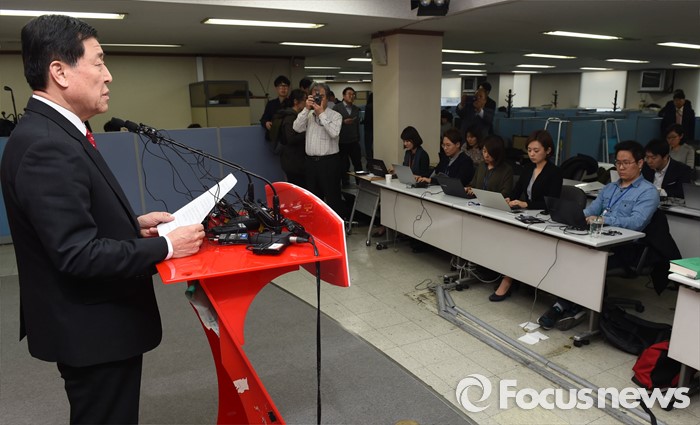 (서울=포커스뉴스) 황진하 새누리당 사무총장이 25일 오후 서울 여의도 당사에서 비공개 최고위원회의 결과 브리핑을 하고 있다. 이날 새누리당 최고위는 정종섭(대구 동갑), 추경호(대구 달성), 이인선(대구 수성을) 후보의 공천을 확정했으며, 유영하(서울 송파을), 이재만(대구 동을), 유재길(서울 은평을) 후보는 공천 의결 보류를 확정했다.